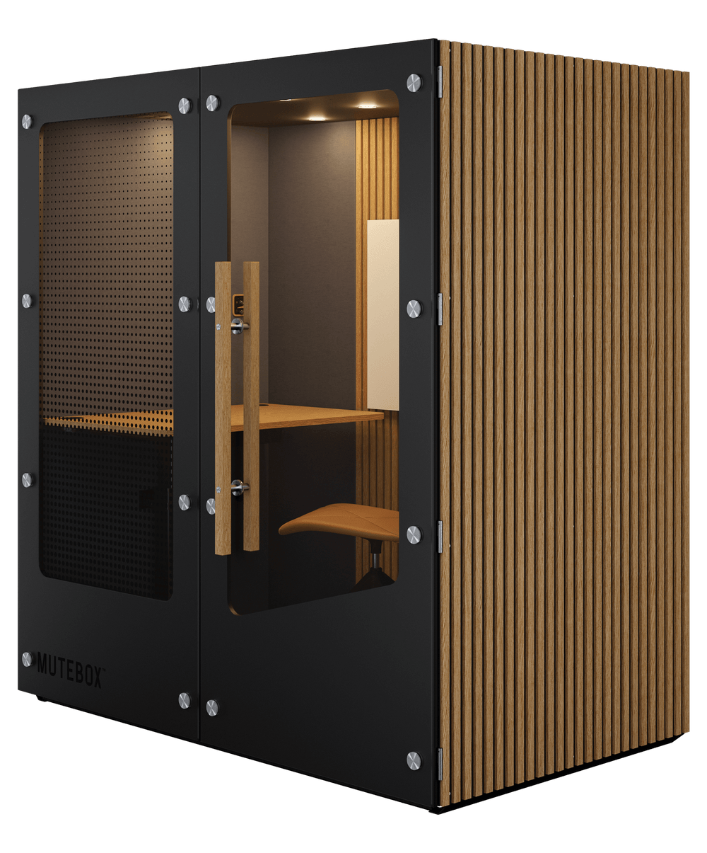 Vi har monteret nogle af markedets bedste akustikpaneler på ydersiden af MuteBoxen.